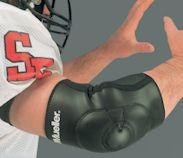 Contoured neoprene sleeve with unique buttress style padding for the elbow provides protection and comfort during impact sports and other activities. At last, the ultimate sleeve for flexibility, comfort, and protection.