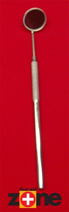 Dental Mirror: Regular Handle (length: 4-3/4" (12.1 cm), width: 5 mm) with screw-in detachable angled mirror - diameter: 3/4" (2 cm), length: 1.75" (4.5 cm).