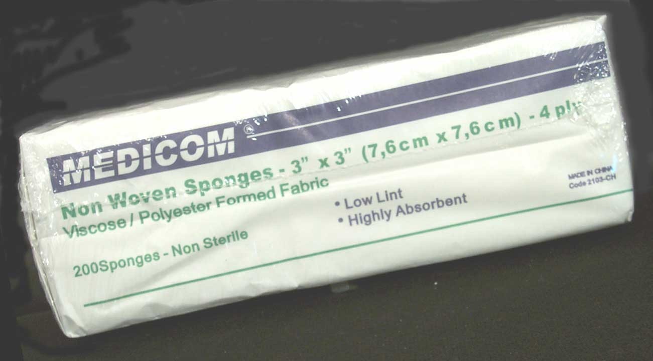 Non-Woven Sponges (Non-Sterile) - 4 ply, 3" x 3" (7.6 x 7.6 cm) 200 pads/sleeve