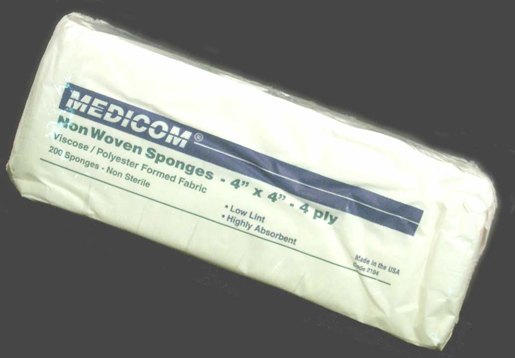 Non-Woven Sponges (Non-Sterile) - 4 ply, 4" x 4" (10.2 x 10.2 cm) 200 pads/sleeve