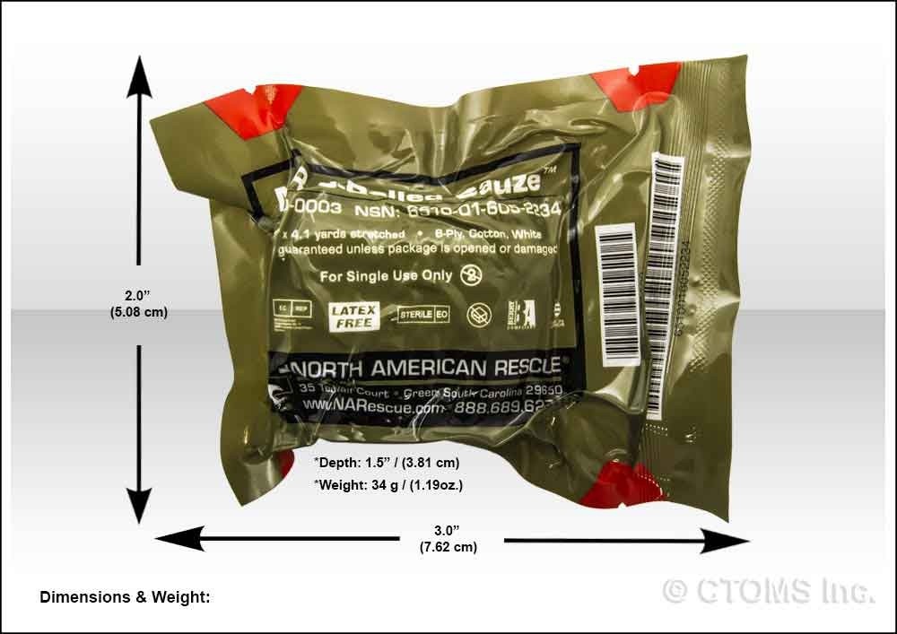 S-Rolled Gauze is the ideal solution for a compact, easy to use, cotton s-rolled gauze designed for both linear wound packing and basic bandaging. Made of premium cotton, S-Rolled Gauze can be used to control hemorrhage in conjunction with a compression bandage, used as backing gauze for hemostatic dressings or for minor wound bandaging. The S-Rolled Gauze is packaged in a unique dispenser that allows for controlled application and protects unused portions from contamination during application. Its low cube space requirement and rugged, durable vacuum sealed packaging make it easy to fit in both individual first aid kits and medic kits.