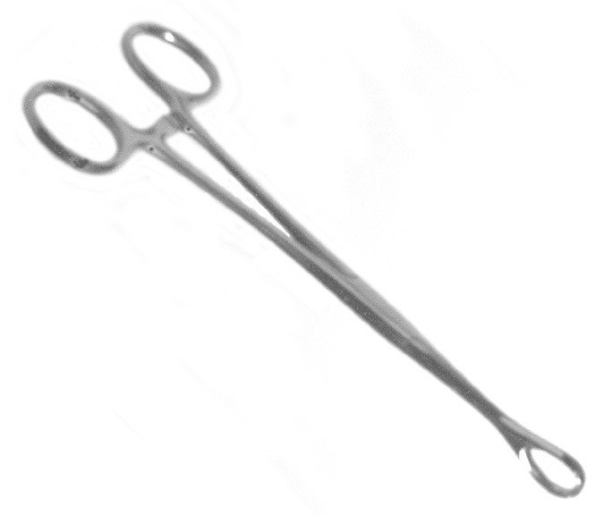 7" Foerster Sponge Forceps, straight with serrated grip around a tear-drop shaped (25 x 8 mm) front opening