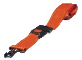 * Two piece restraint straps made of 5.1 cm (2") orange nylon webbing with a quick-release push button buckle (automobile-type) and metal swivel speed clip