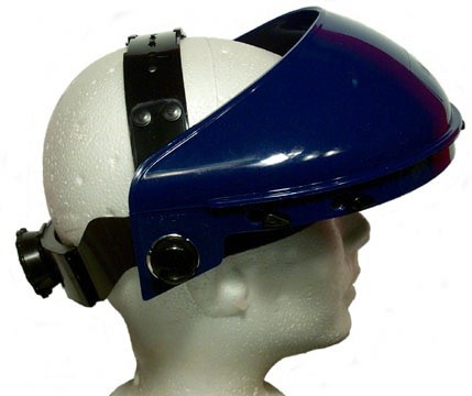 Polycarbonate headgear has a ratchet adjustment to accomodate different head sizes. Just pull and turn to increase or decrease the head size.
